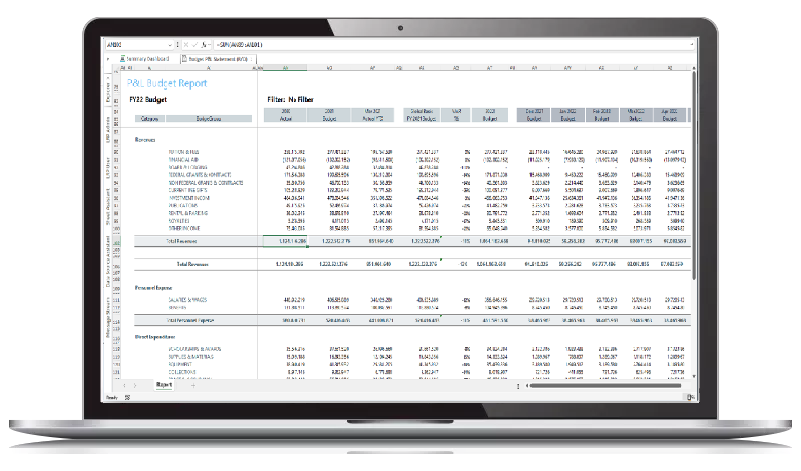 It's up to you to choose: for data input (e.g. Budgeting, Capital Planning, ...) or pure output (Dashboards and Reporting), use either our Web client, either our familiar spreadsheet client (MS Excel):